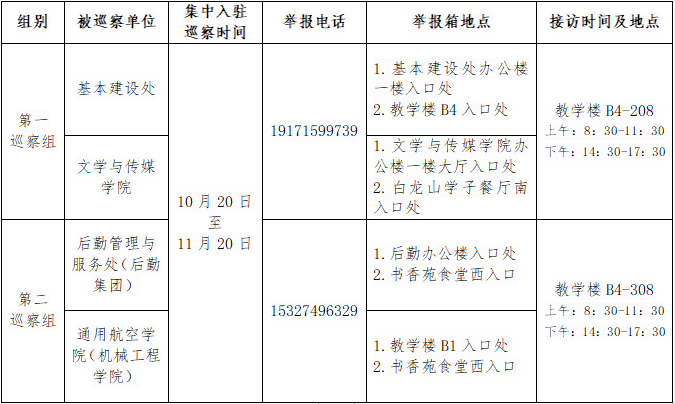根据一届党委第一轮巡察工作统一部署,10月20日,2个党委巡察组完成对4个单位党组织的巡察进驻工作。