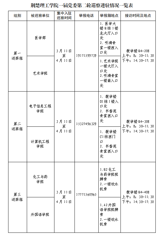 根据一届党委第二轮巡察工作统一部署,3月11日,3个党委巡察组完成对6个单位党组织的巡察进驻工作。